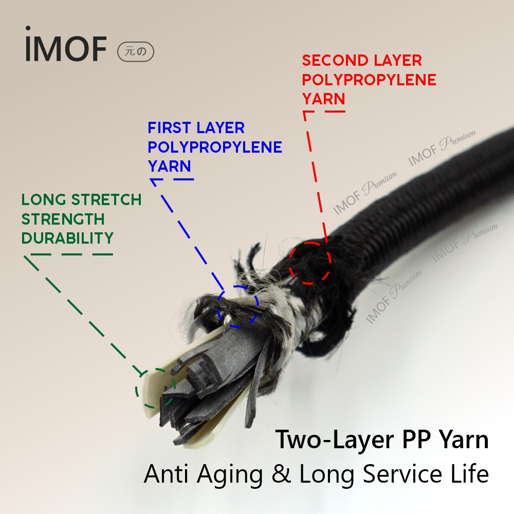 Merek : IMOF Model : Shock Cord Kualitas : Premium Quality Karet : High Quality Latex Benang : Two-Layer PP Jahitan : Cross Woven Diameter ø Tali : 8 mm Panjang Tali : 60 cm Kait : Heavy Duty Ultra Hard Plastic Coated Diameter ø Kait : 3.5 mm Warna tersedia : Hitam