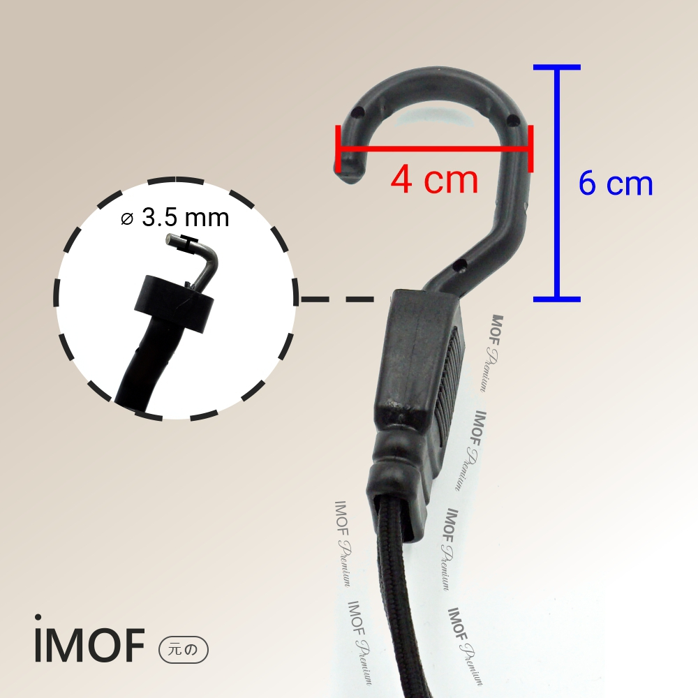 Merek : IMOF Model : Flat Bungee Cord Kualitas : Premium Quality Karet : High Quality Latex Benang : Two-Layer PP Jahitan : Cross Woven Lebar Tali : 18 mm Panjang Tali : 100 cm (Dapat disesuaikan Max. 100 cm) Kait : Heavy Duty Ultra Hard Plastic Coated Diameter ø Kait : 3.5 mm Warna tersedia : Hitam