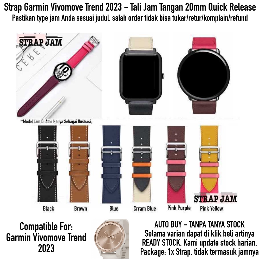 Tali Jam 20mm Strap Garmin Vivomove Trend 2023 - Fashion Kulit Penuh Gaya