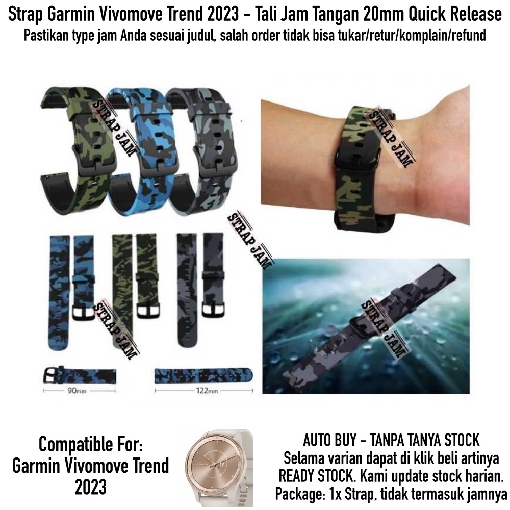 Detail Tali Jam 20mm Strap Garmin Vivomove Trend 2023 - Camo Army Keren Camoflauge