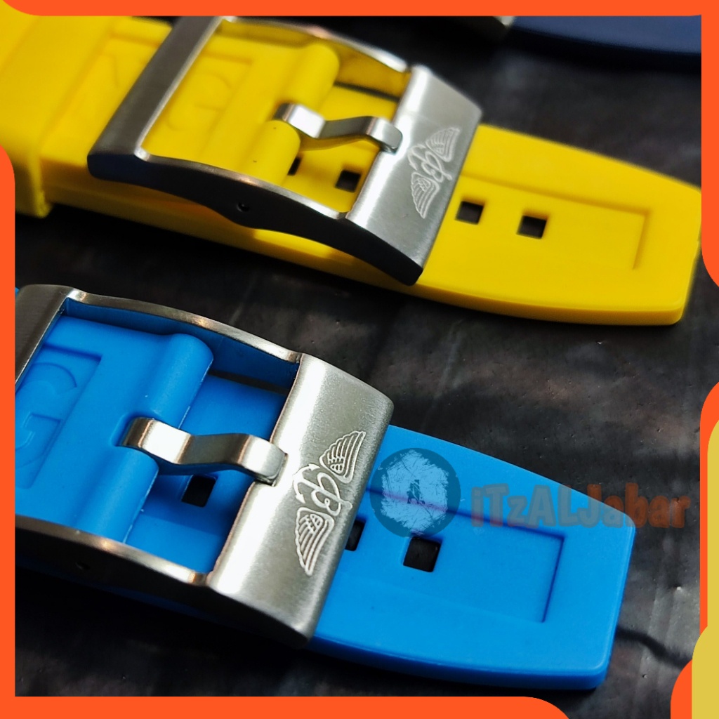 Material : Rubber Silicone. Pilihan ukuran : 22mm | 24mm. Pilihan warna : Biru muda | Biru navy | Hitam | Kuning | Merah.