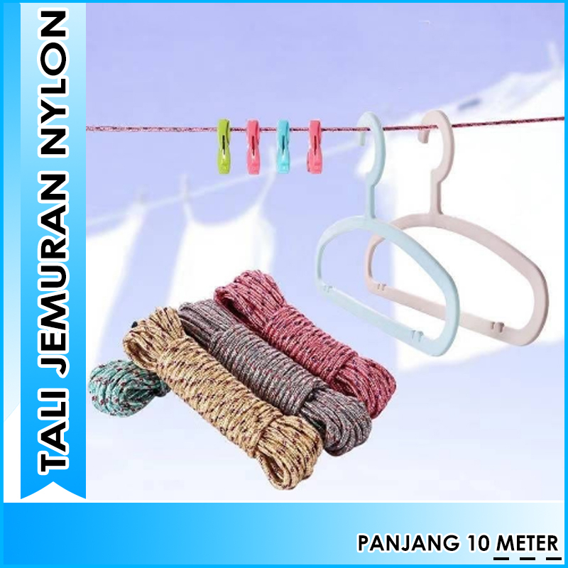 Perlengkapan Rumah > Alat Pemeliharaan Rumah > Tali Jemuran & Rak Pengering > Tali Jemuran Baju 10 Meter Tebal Dan Kuat Nylon Tali Tambang 5mm Portabel