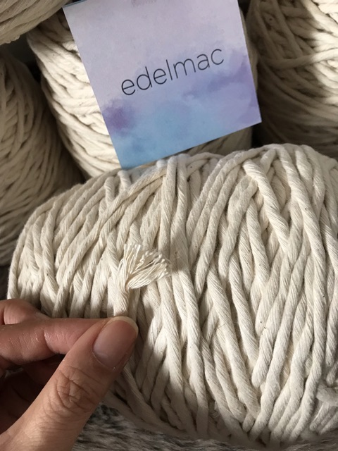 Tali katun macrame natural single strand Harga untuk per 1kg Panjang -/+180m Berat 1kg Warna cream / beige single strand yang ini lebih mudah di aplikasikan bagi mereka yang suka membuat daun maupun bulu jadi lebih gampang di sisirnya daripada yg 3ply twist.