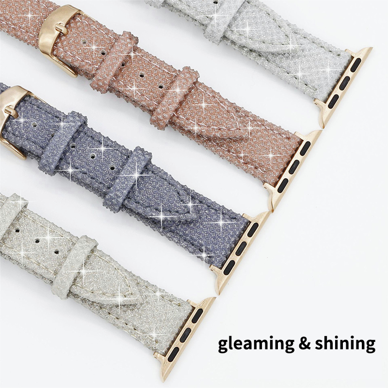 Handphone & Aksesoris > Perangkat Wearable > Aksesoris Perangkat Wearable > Tali✅Leather Gleaming Shining Watch Strap Compatible With iWatch Ultra 8 SE 7 6 for iWatch Series 49mm 45mm 41mm