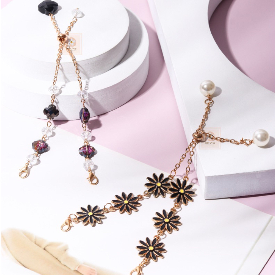 TALI MASKER HEADLOOP / PREMIUM IMPORT KALUNG MASKER KOREA / STRAP MASKER 2IN1 / RANTAI MASKER KOREA / TALI HIJAB 2 IN 1 MUTIARA KRISTAL KOREA / AKSESORIS MASKER MOTIF BUNGA / TALI MASKER ANAK