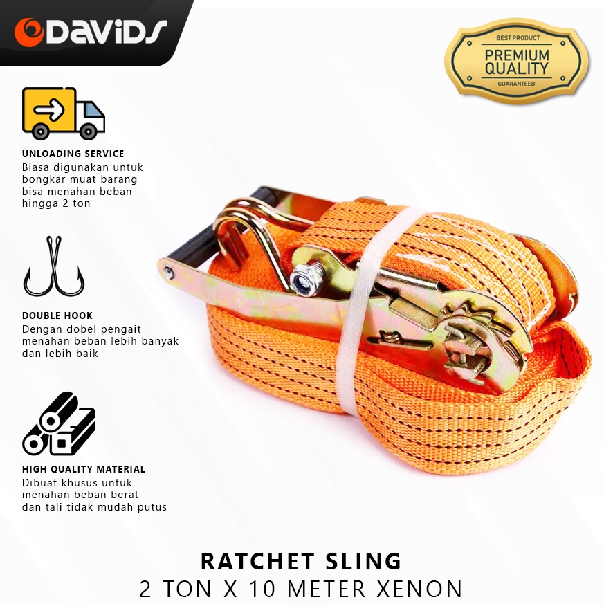 Merk : Xenon Kapasitas : 2 Ton Panjang : 10 Meter Lebar Webbing / Tali : 50 mm Tebal Webbing / Tali : 1,5 mm Bahan Webbing / Tali : Polyester Bahan Gagang : Alumunium Tebal Gagang : 16 mm Tebal Besi Kail : 8 mm