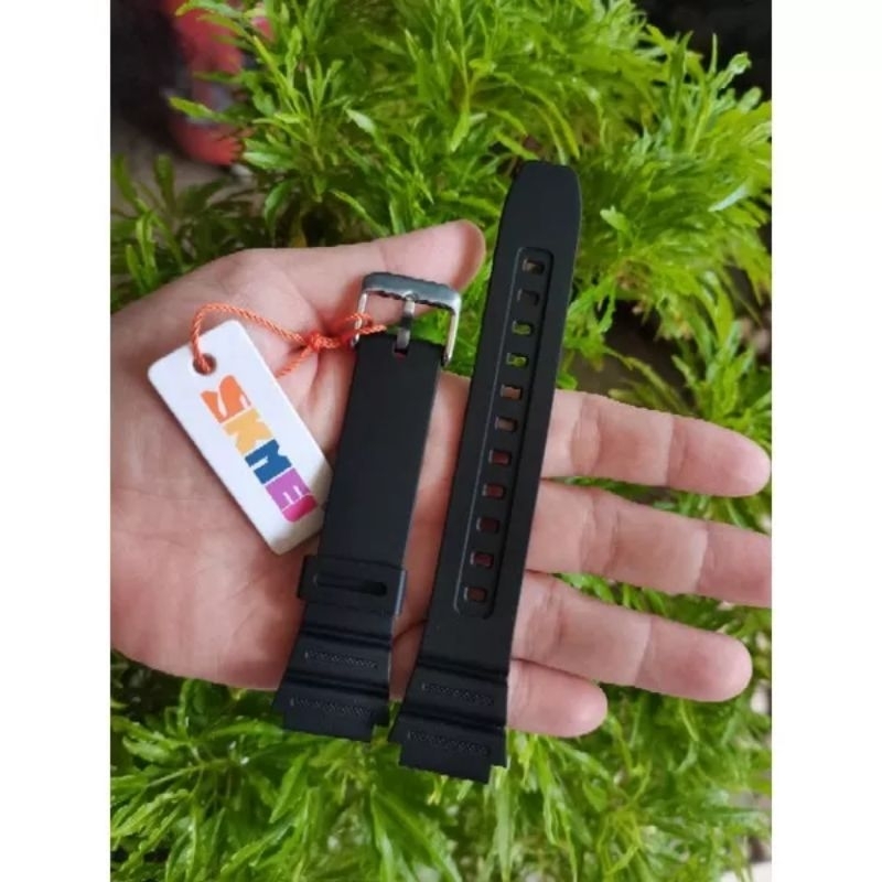 Strap ae 1200 AE 1300 original Brand : SKMEI Warna : Hitam Bahan : Rubber Lentur Buckle : Stainless steel Type : AE 1200 AE 1300 Original