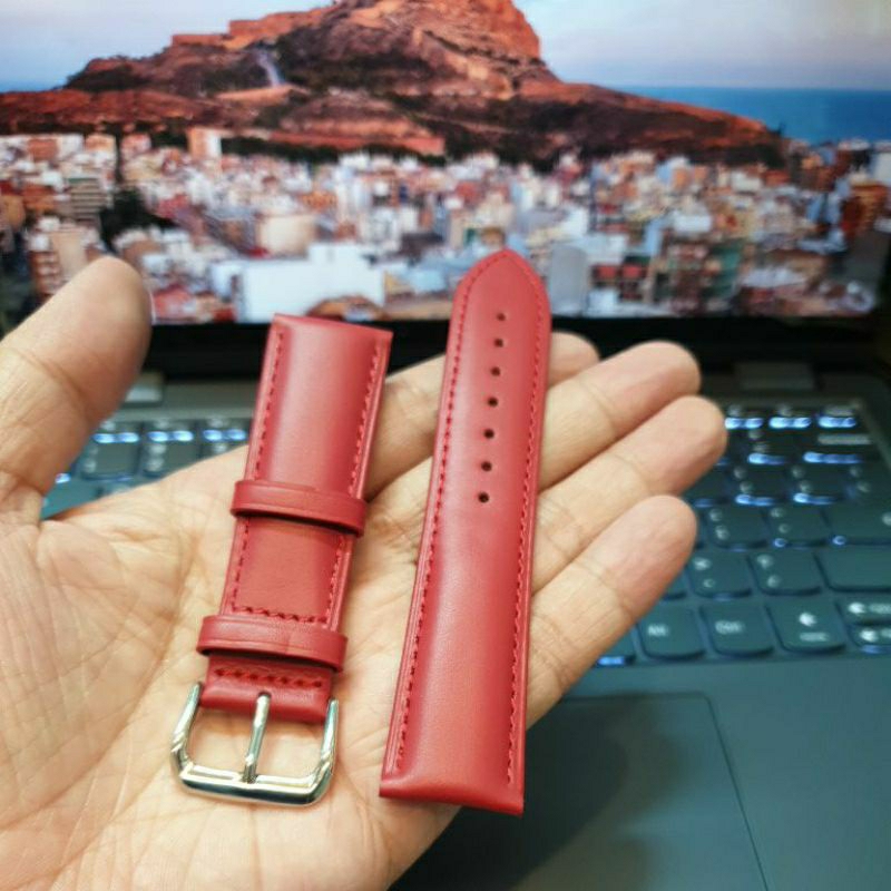Detail Tali strap kulit jam tangan warna merah polos 14MM 16MM 18MM 20MM 22MM kulit asli polos