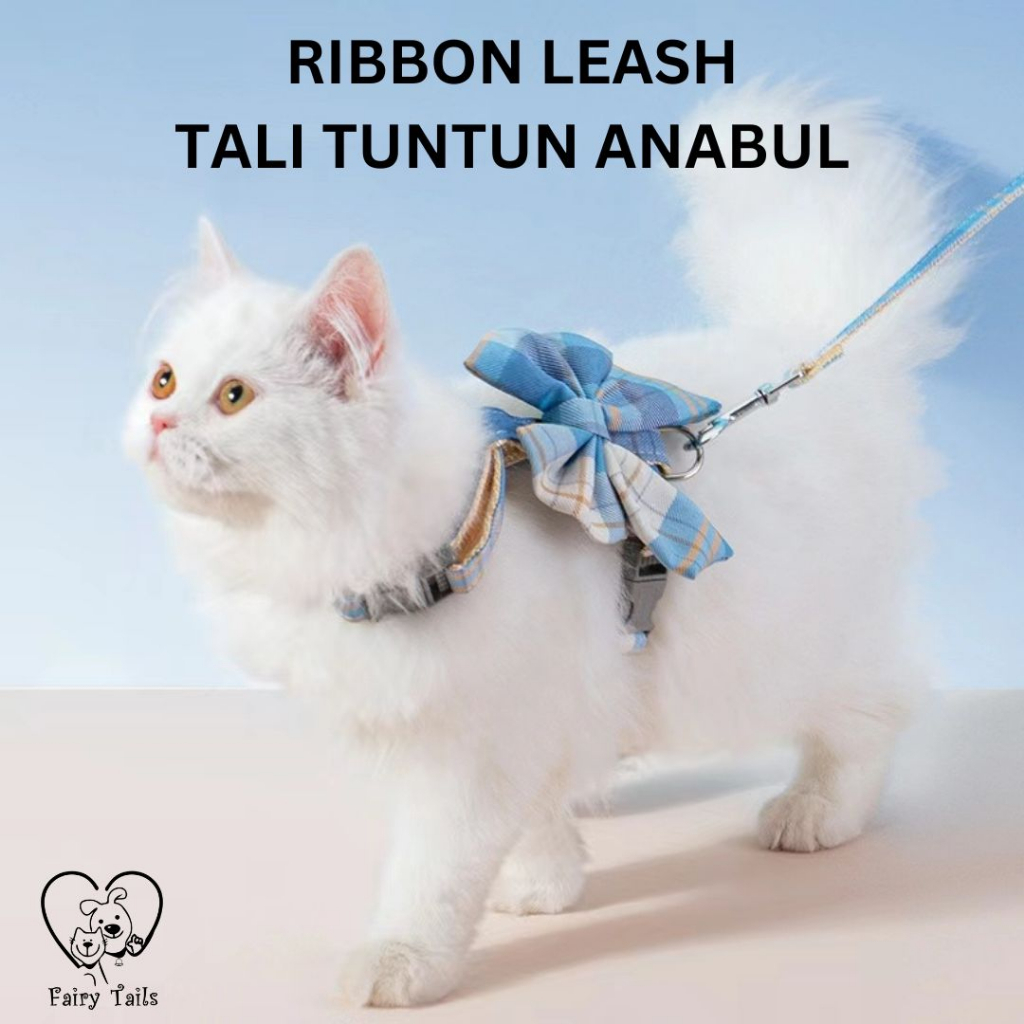 Tali Tuntun Tali Kekang dengan Harness Pita Untuk Anabul Kucing dan Anjing Travel Outdoor | Pet Cat Dog Leash With Ribbon