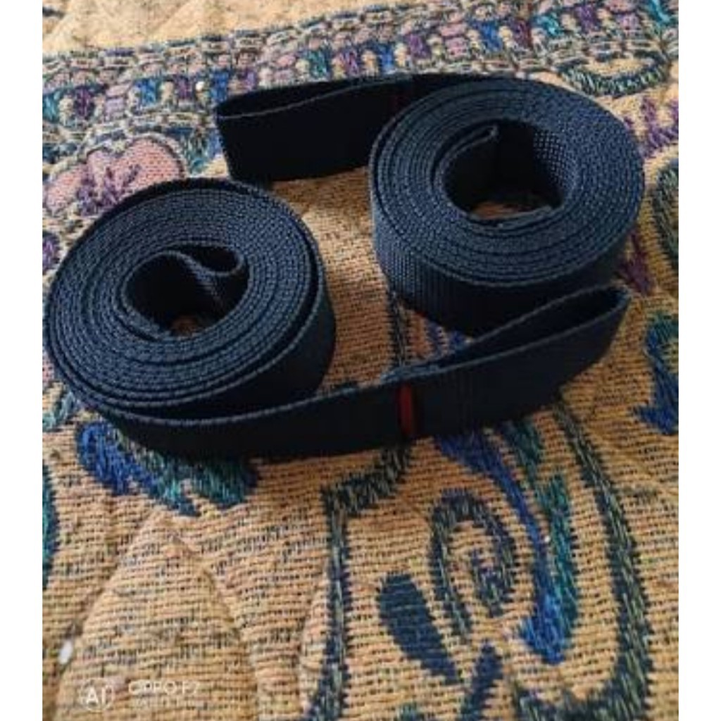 Detail produk dari SATU PASANG - Tali Hammock Panjang 2.5 Meter Full Bartex - Tali Webing - Pengikat Hamock - Ayunan Gantung - Hamock Murah Tebal - Kasur Tempat Tidur Gantung - hamok - hemok - hanmock - Hamuk : - Ready warna hitam saja - Harga untuk 2 pcs tali / 1 pasang - Tali webbing hammock rol (bukan kiloan), tidak ada bordir / sablon tulisan - Jahitan double Bartex di ujung simpul - Panjang ± 2,5 meter, lebar 2,5 cm - Cocok untuk tali tambahan hammock, atau sparepart hammock