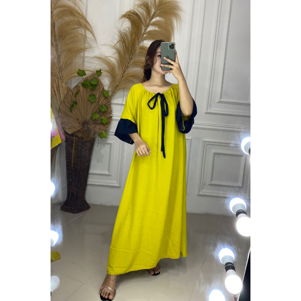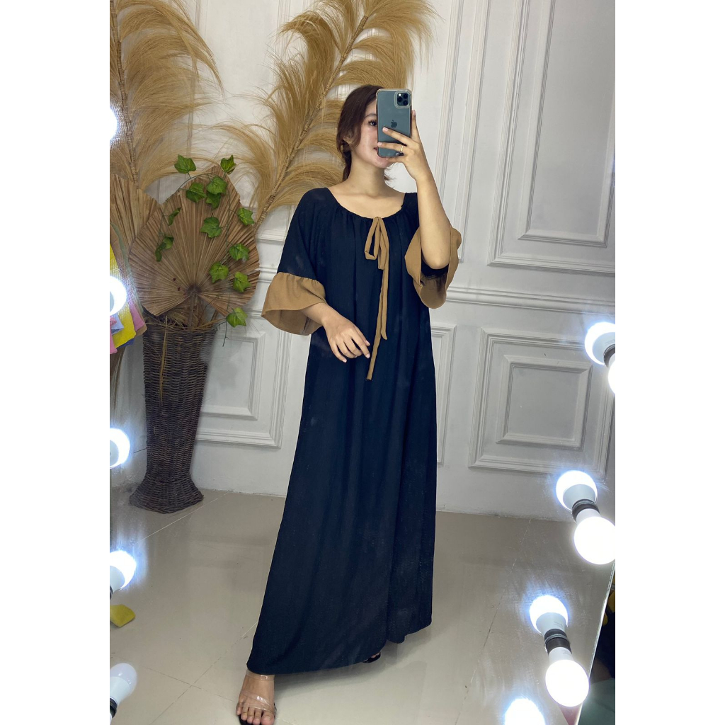 Ready Thalia Dress kombinasi Terbaru Bahan rayon cringkel Aksen kerut dada & tali Aksen tangan terompet kriwil LD 120/125 PB 125