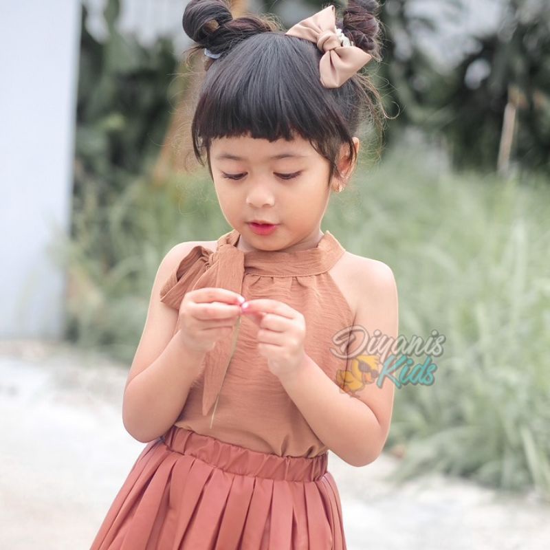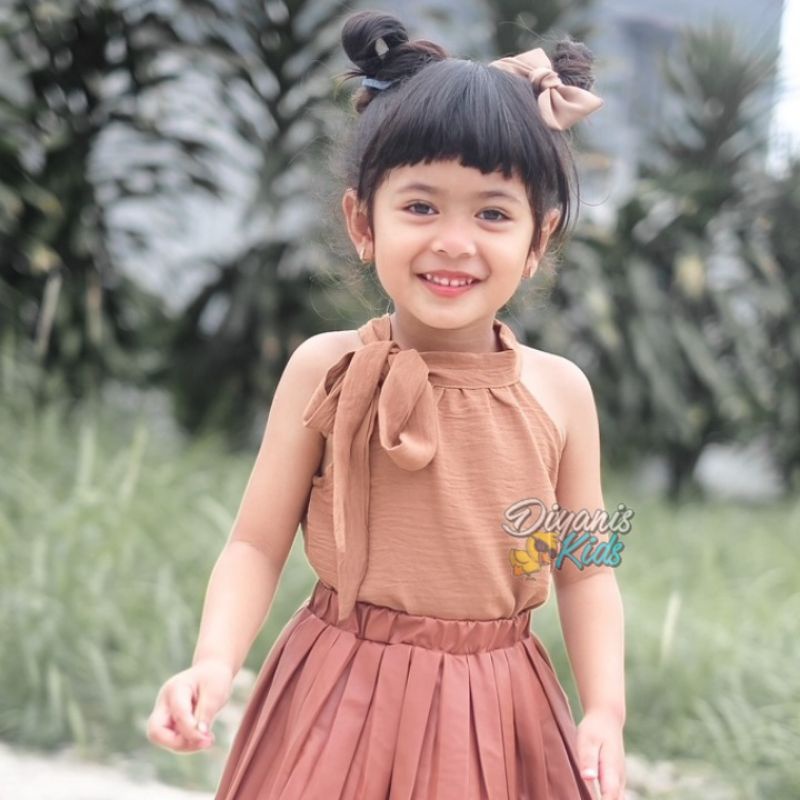 Selain itu design juga elegant, simple dan juga cantik, yang membuat sikecil tampil cantik dan percaya diri saat memakainya. Tali bagian leher aktif, jadi bisa dikreasikan.