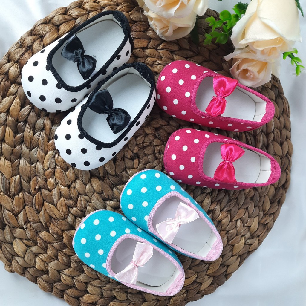 Detail [TAMAN SEPATUKU] SEPATU TRENDY MURAH PREWALKER ANAK PEREMPUAN 0-12 BULAN MOTIF POLKADOT FPX08