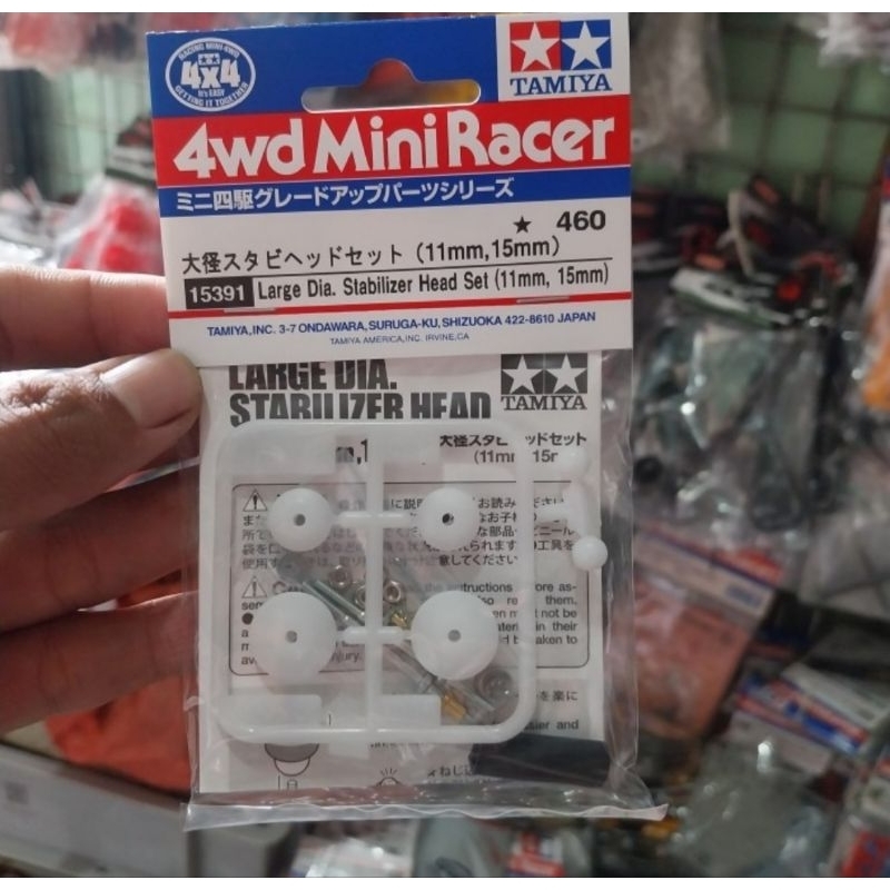 TAMIYA 15391 LARGE DIA STABILIZER HEAD SET (11mm, 15mm) [This is a useful part to improve the performance and set up the machine] Increase the running stability by reducing the tilt of the machine at the corner. We have set two sizes that can be combined with a 13-19mm roller. The stabilated head is made of high strength and low friction resin. [Specs] Resin stabilage head with high strength and low friction TAMIYA ORIGINAL #TAMIYA