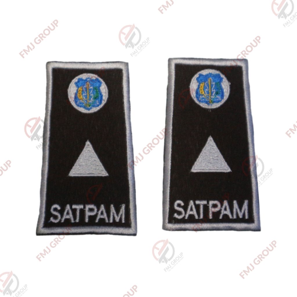 Tanda Pangkat Satpam / Security Pundak Bordir Lis Putih : Pelaksana Warna Dasar : Coklat