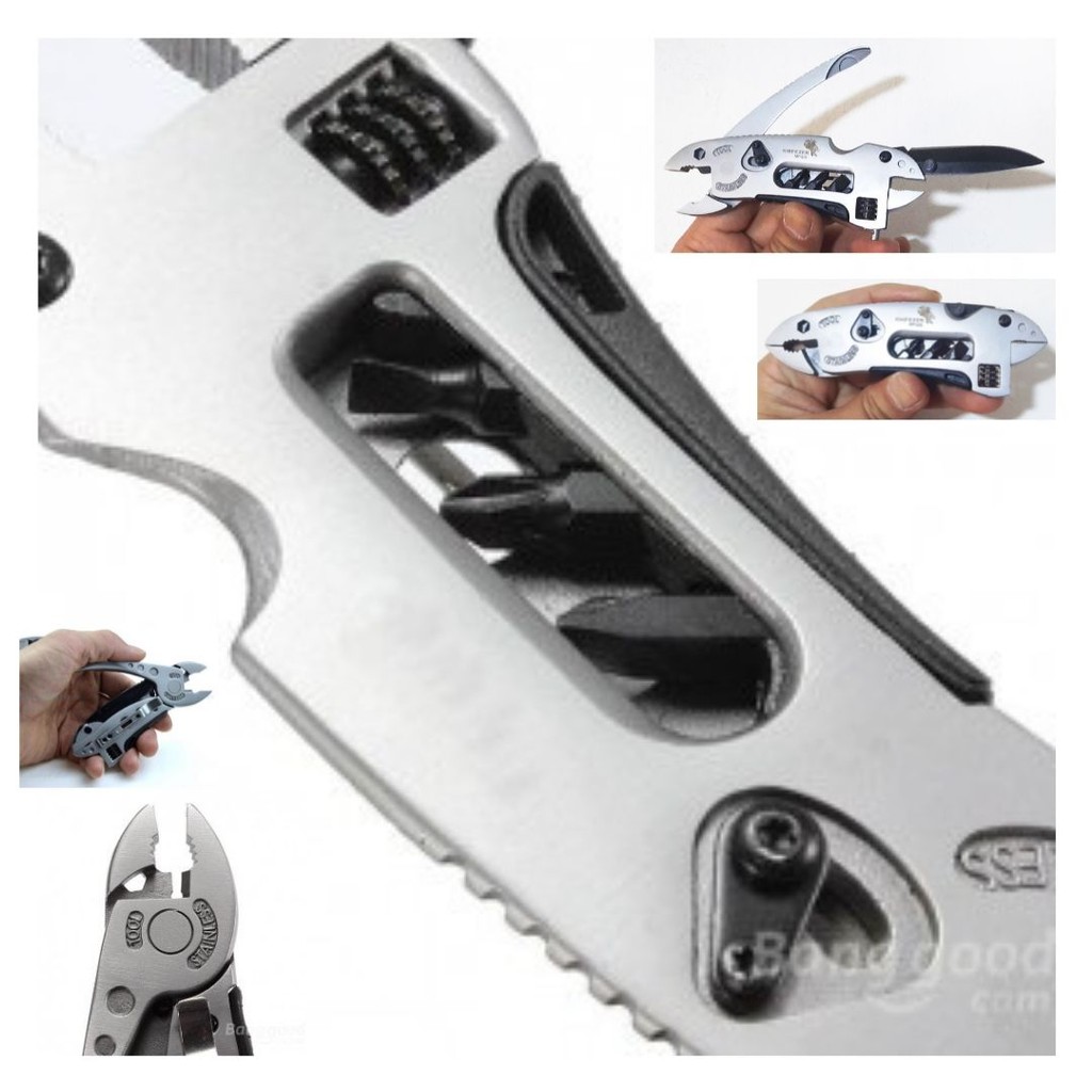 Kunci Multitool Set dengan berbagai macam fungsi seperti pisau mini, gergaji, tang, obeng dan kunci pas. Terbuat dari stainless steel yang membuat alat ini sangat kokoh dan tahan lama.