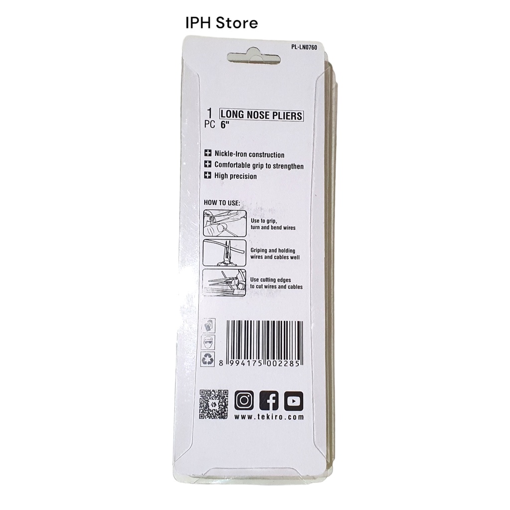 Detail Tang Lancip / Gegep / Long Nose Pliers Tekiro PL LN 0760 (Ukuran 6 Inch)