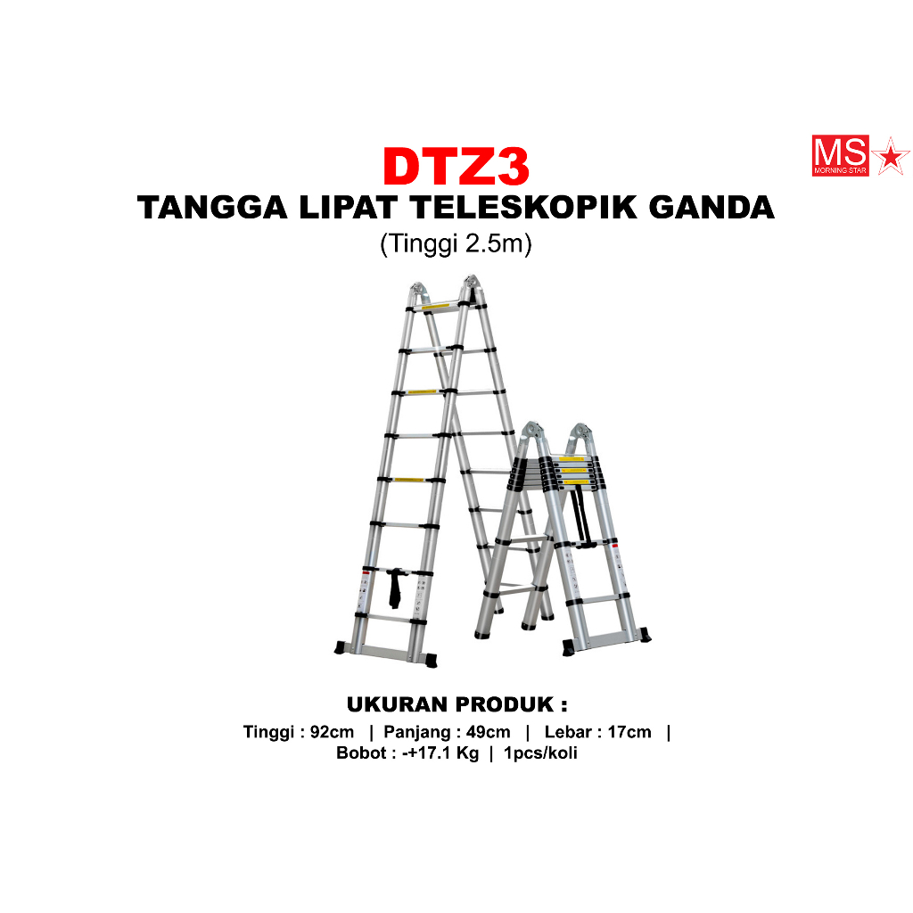 Perlengkapan Rumah > Renovasi Rumah > Tangga > Tangga Lipat Aluminium Kuat Dan Kokoh Tangga Berkualitas Tinggi Double Telescopic Ladder 1.9M/2.2M/2.5M DTZ