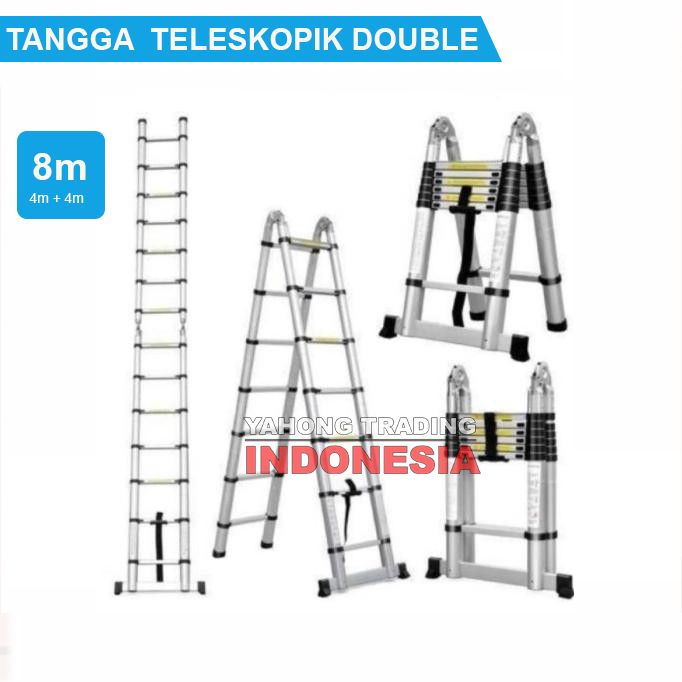 Tangga Teleskopik Double Tangga Lipat Susun Telescopic Ladder 8m (4m + 4m)