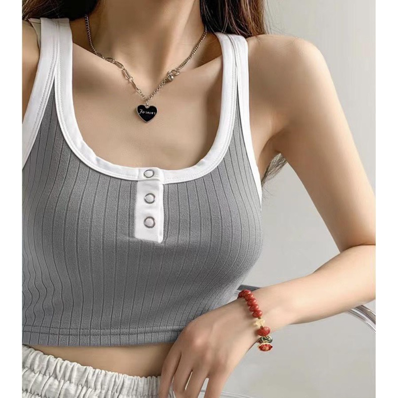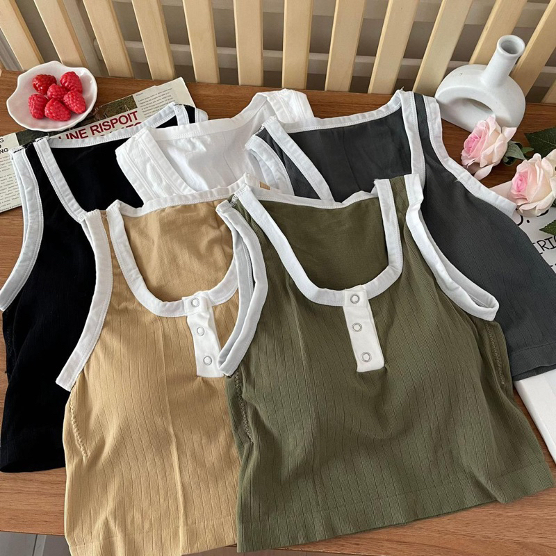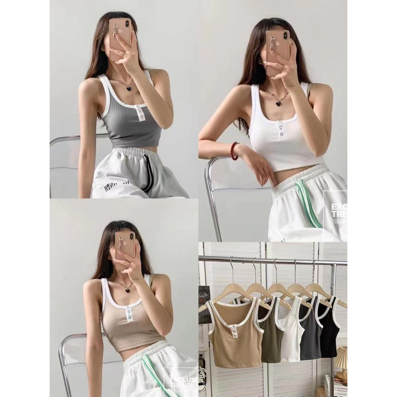 Detail Tanktop Crop Import 100% (T139)| Tank top Wanita Korea Kancing 3 Hidup