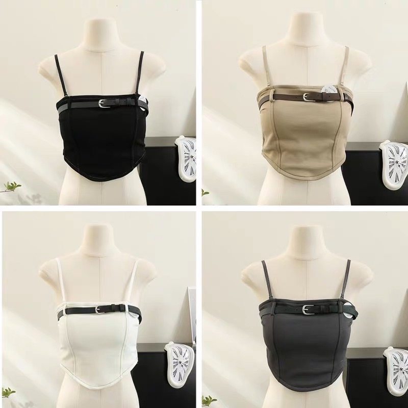 Pakaian Wanita > Atasan > Tanktop & Kamisol > [SEDANG RESTOCK] Tanktop crop top lucu ikat pinggang korean style