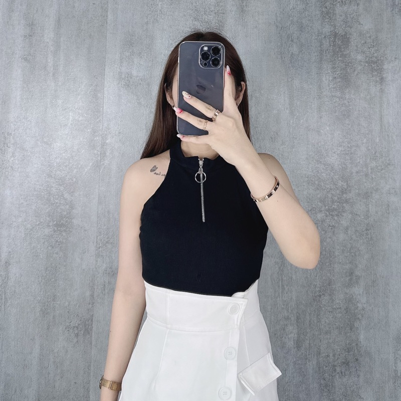 Pakaian Wanita > Atasan > Tanktop & Kamisol > Tanktop Halter Zipper | Tanktop korea