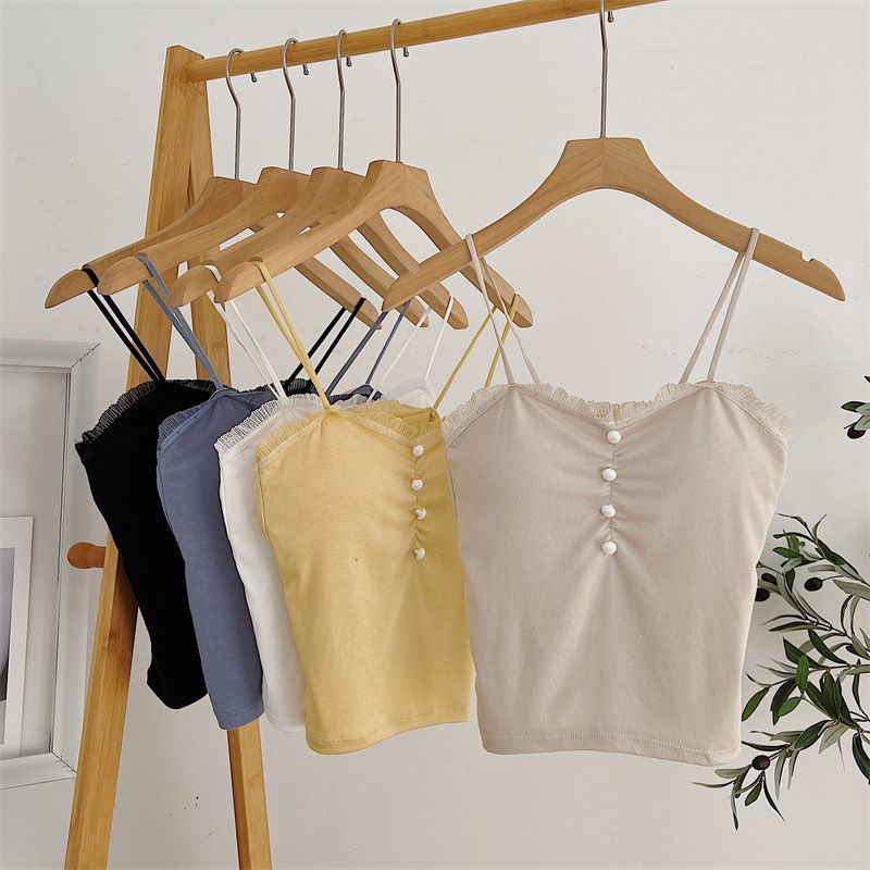 Detail Tanktop Tali Import (T2111) Tanktop Korean Tank top Kancing 4 Mutiara Import 100%