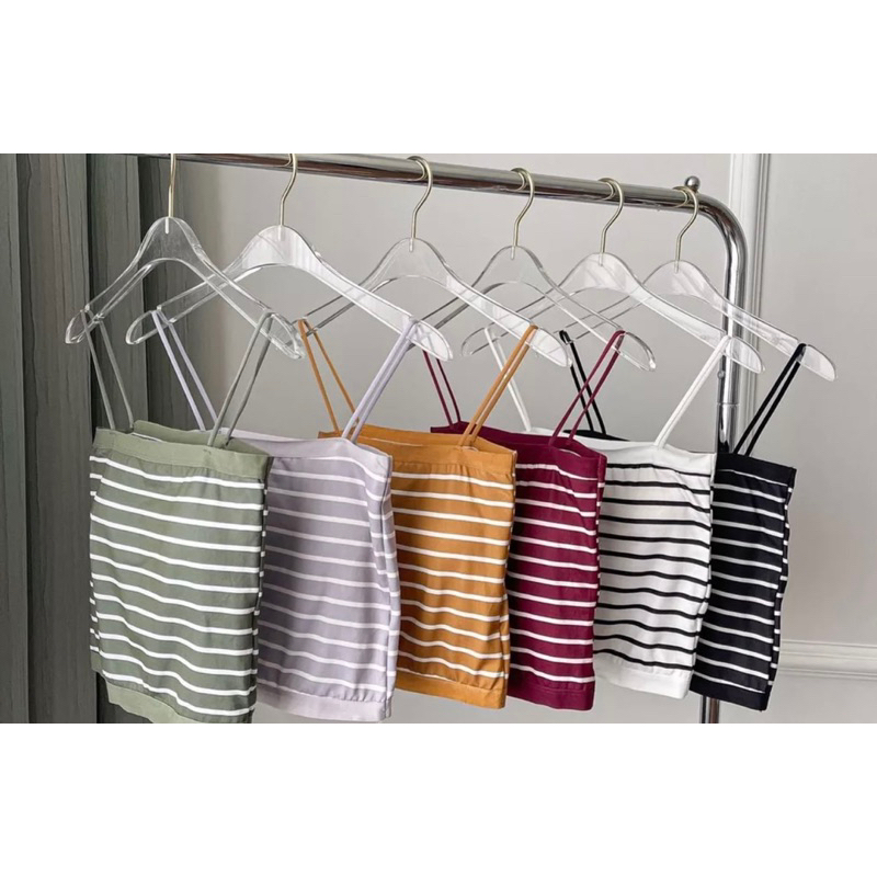DESKRIPSI PRODUK LENGKAP Tanktop wanita garis Bahan = Nilon + Spandex Bust = 68-100cm cocok untuk berat badan 40kg - 60kg With Cup Bra