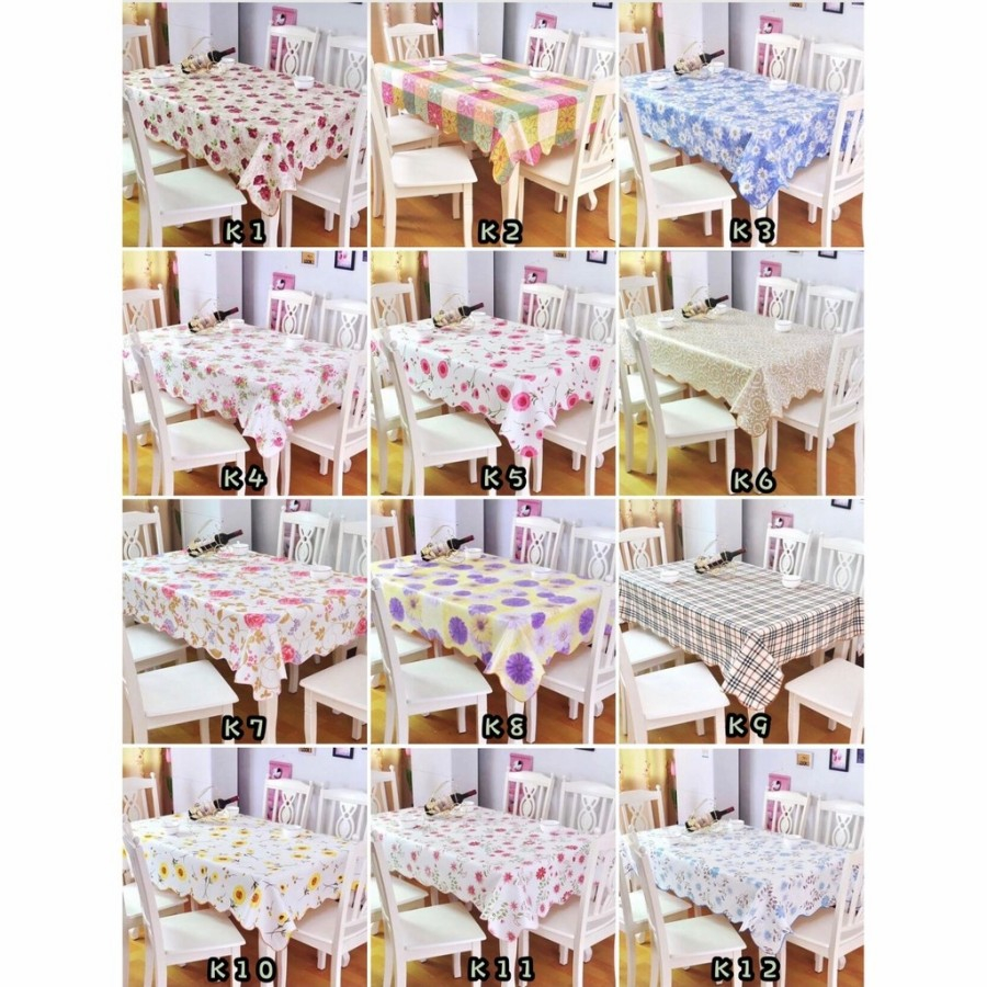 Taplak meja cantik dari bahan plastik anti air. Hadir dengan aneka motif menarik, tampilan meja jadi cantik dan modern. Bahan : PEVA Ukuran : 106 x 152cm