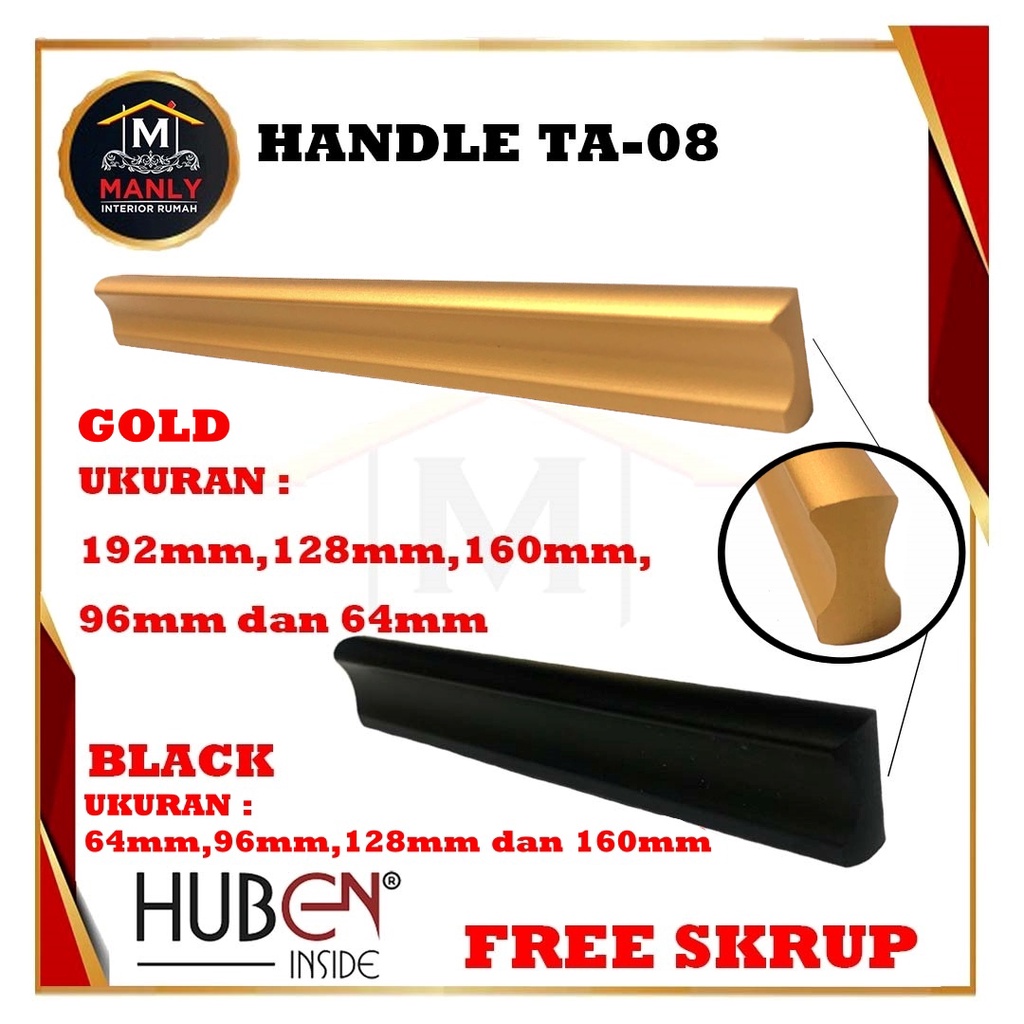 TARIKAN HANDEL LEMARI / HANDEL LACI TA-08 HUBEN Merek: HUBEN Type : TA 08 Warna: Black & Gold Ukuran: 64mm, 96mm, 128mm, 160mm. Harga: per pcs FREE SKRUP!!!!!!!