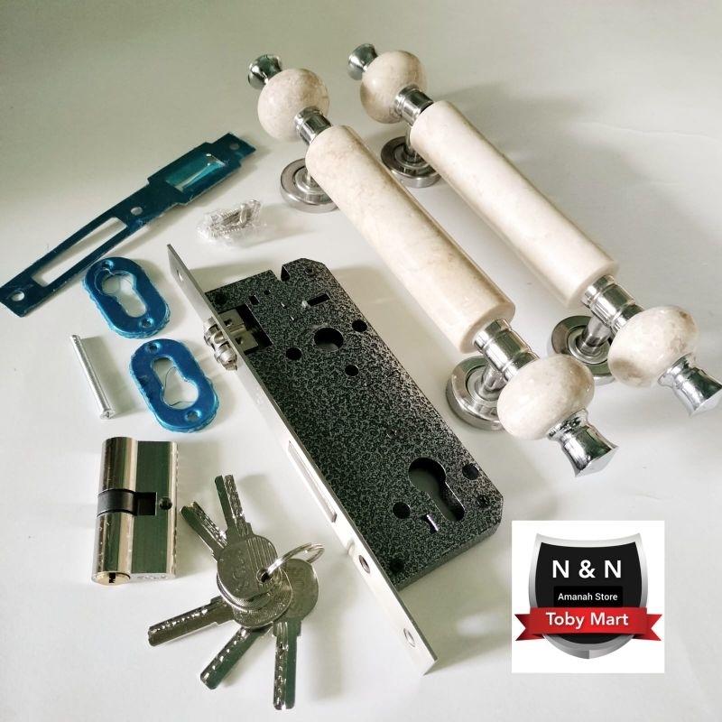 Perlengkapan Rumah > Alat Pengaman > Perangkat Pintu & Gembok > Tarikan Pintu rumah 1set KUNCI Handle pintu rumah 32cm / Gagang pintu Batu Marmer Stainless 32cm