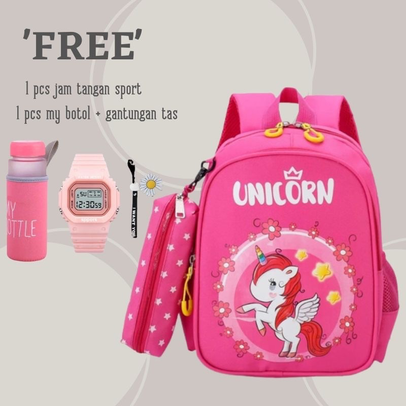 Tas Anak Ransel Sekolah 2in1 Karakter Unicorn Kartun Lucu Model Tas Taman Anak Tren Untuk Anak Perempuan