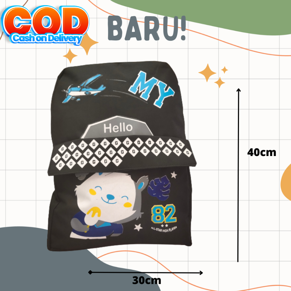 Detail Produk : Bahan : D300 kanvas lembut Ukuran : 40×30 CM ke atas dan ke pinggir Pemakaian : Cocok di gunakan untuk anak SD maupun TK tergantung tinggi anak nya tesebut Aksesoris/boneka di beli terpisah cek di etalase kita