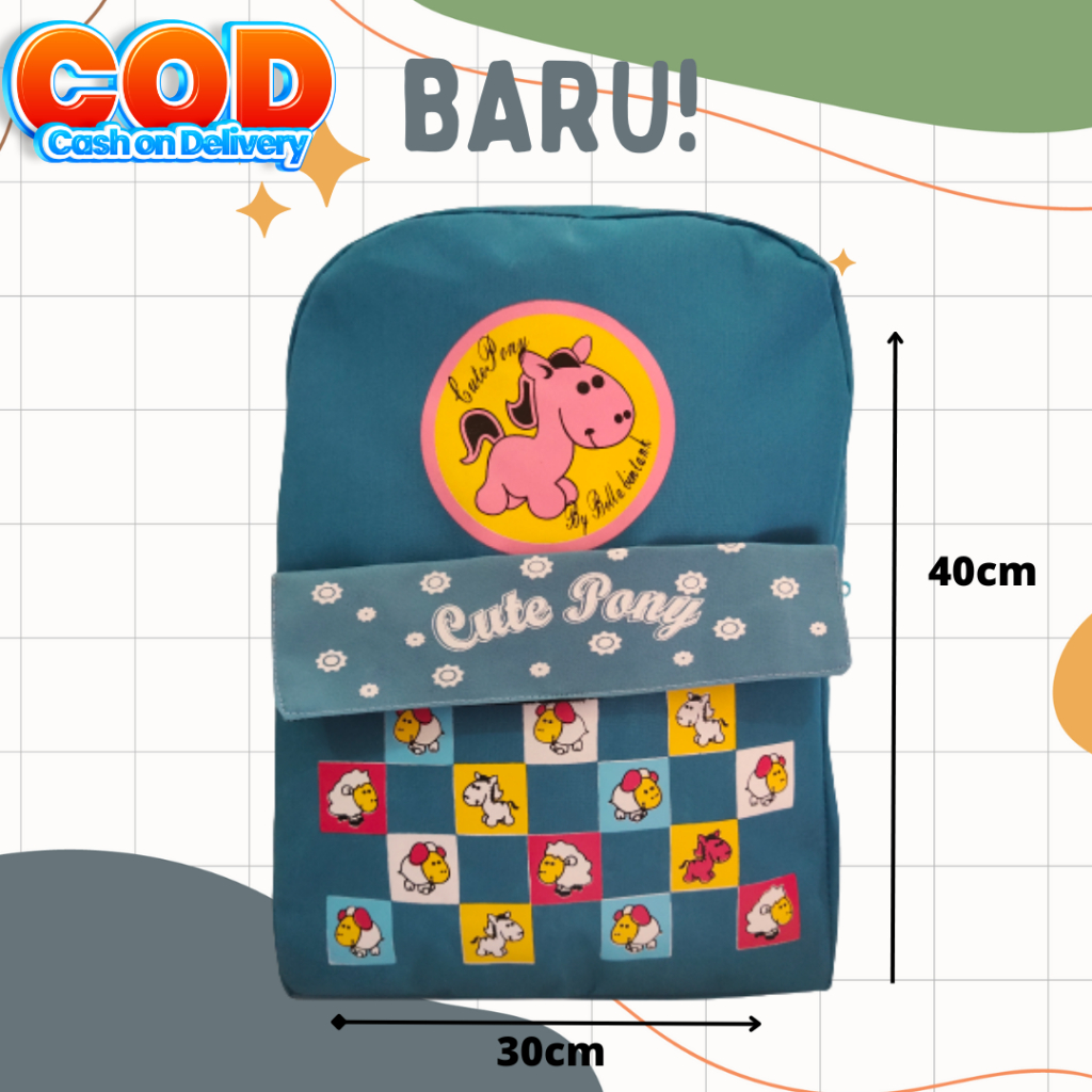Detail Tas Anak Sekolah Perempuan Laki-laki SD TK murah Tas Sekolah Karakter Kartun kuda pony unicorn / Ransel anak sekolah tas gendong