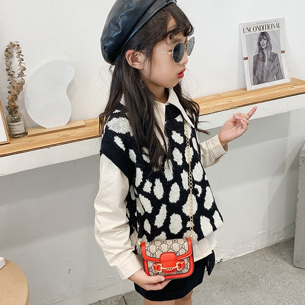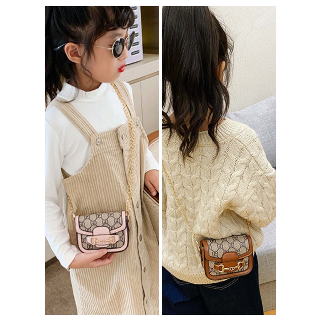 Tas Anak2 Fashion Aksen Bermerk Tidak muat HP Bahan Kulit PU Tali rantai bisa di adjust dengan cara kaitkan kembali ke lobang rantainya Size : P 12cm x L 5cm x T 10cm