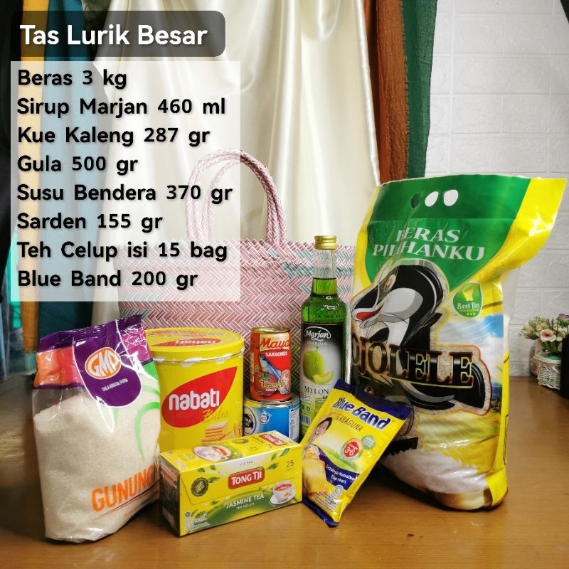 Tas anyaman plastik lurik tanggung cocok buat souvenir, hampers pesta acara syukuran ataupun untuk perlengkapan bingkisan sembako maupun wadah berkat sebagai pengganti kresek, barang ramah lingkungan upaya mendukung pemerintah untuk mengurangi tas kresek. foto diatas adalah Real. Ukuran detail bisa dilihat pada foto.