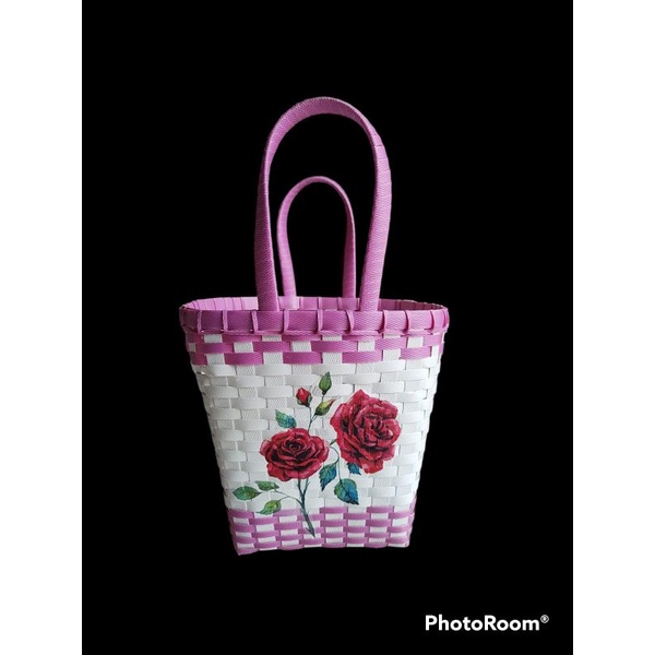 tas model bulatkecil muat gula 4 kg ukuran tas 15x15 tinggi 20 cm terbuat dari anyaman plastik kuat awet motif cantik