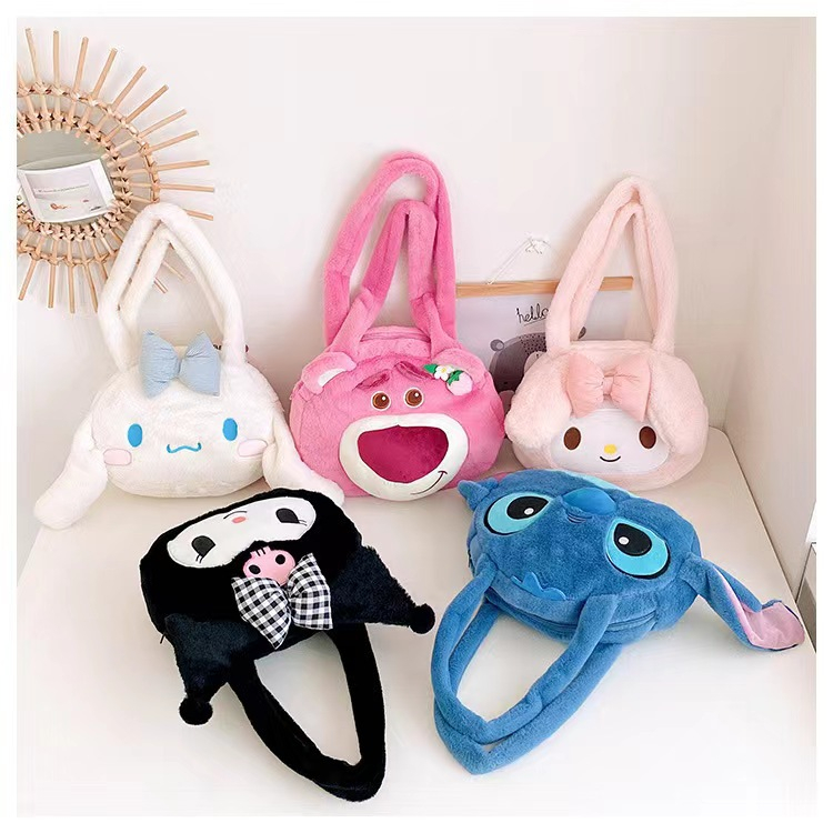 Detail Tas Bahu boneka kartun kuromi melody cinnamoroll lotso bahan plush