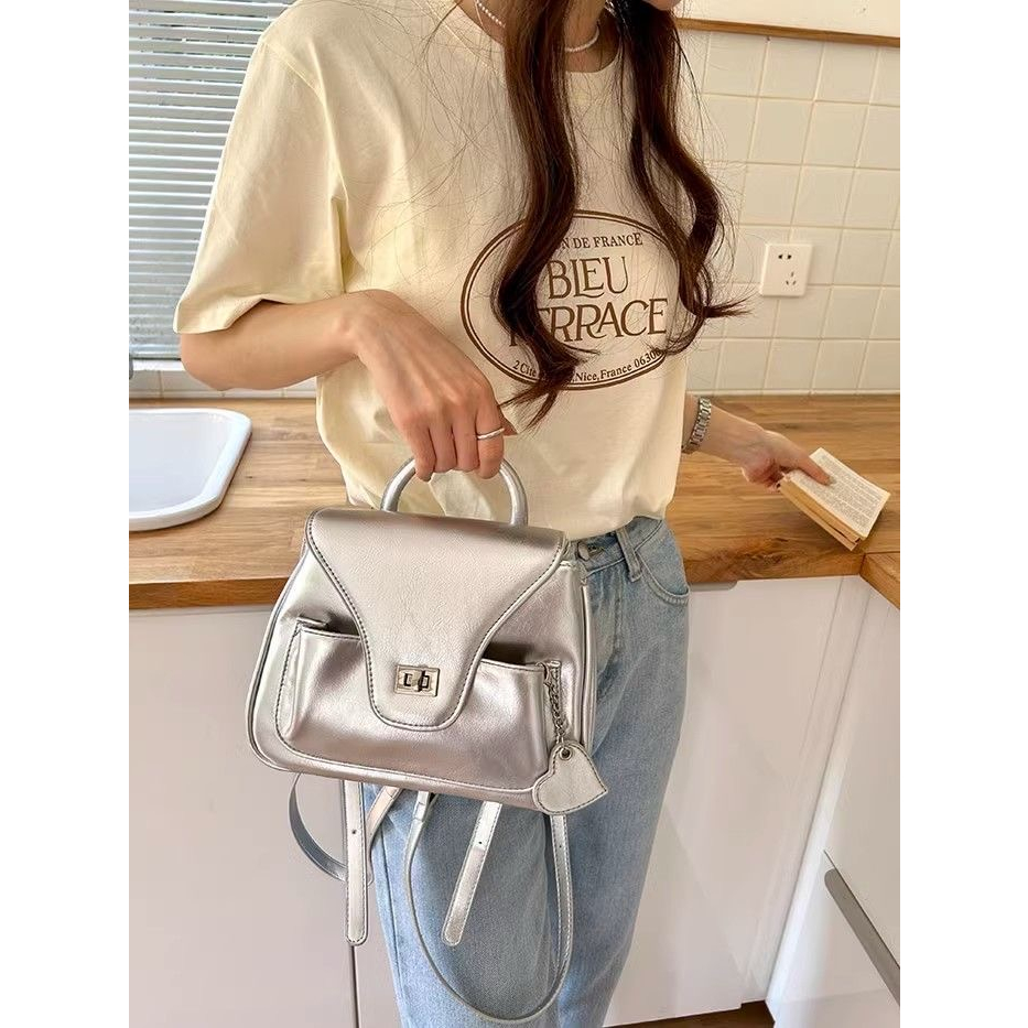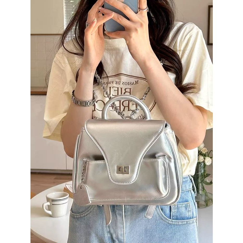 Tas Wanita > Ransel Wanita > Tas bahu Manchester kunci rantai merek minoritas trendi musim panas baru perak sederhana kapasitas besar tas bahu siswa perempuan