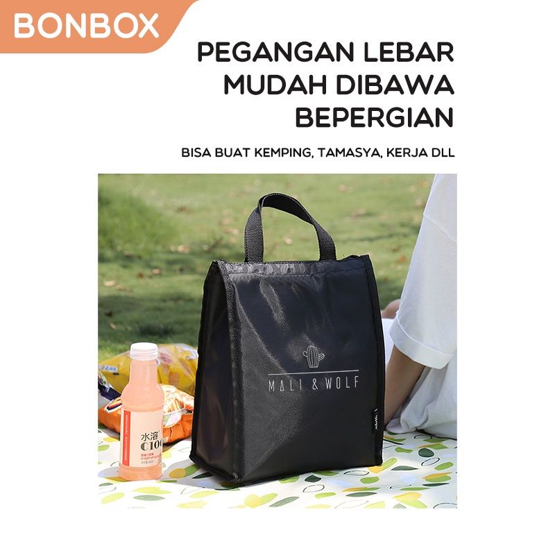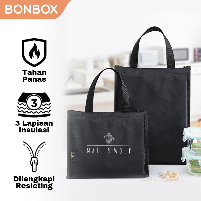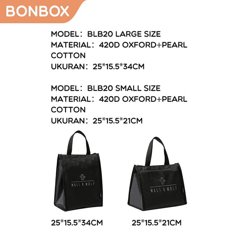Tas Bekal/Lunch Bag Bonbox BLB20 Large Size/Small Size - Hitam 💎Keunggulan: Tas Bekal Insulasi Tas bekal ini mempunyai 3 lapisan insulasi - lapisan tengah menggunakan pearl cotton sehingga makanan tetap hangat, mempunyai kapasitas besar bisa masukkan 2 kotak makanan, mempunyai pegangan lebar mudah dibawa berpergian - bisa buat kemping, tamasya, kerja dll.