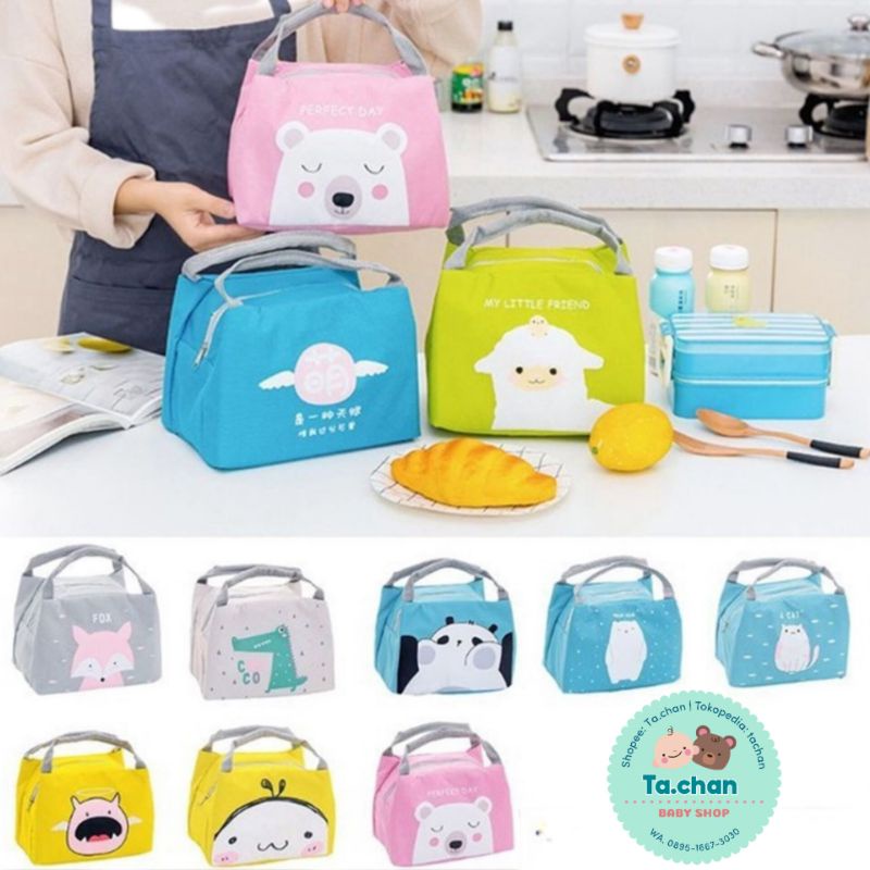 Tas bekal dengan lapisan pelindung di bagian dalam. Cocok untuk digunakan sebagai tas bekal anak / tas bekal ke kantor /tas pembawa ASI perah / cooler bag Asi