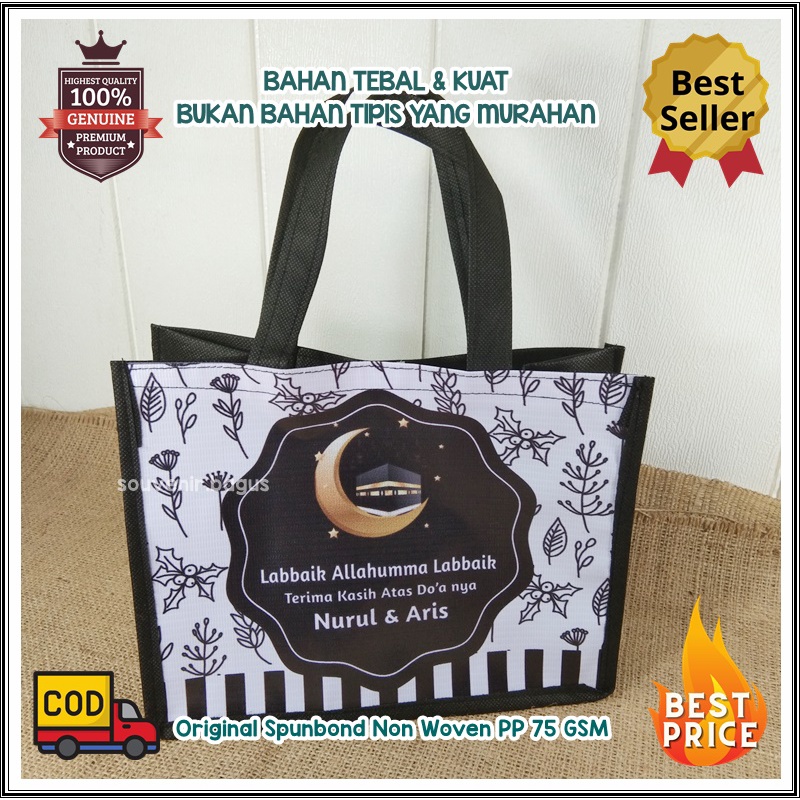 menggunakan bahan spunbond non woven 75 gsm, kuat hingga beban 7 kg untuk gambar menggunakan bahan vinyl