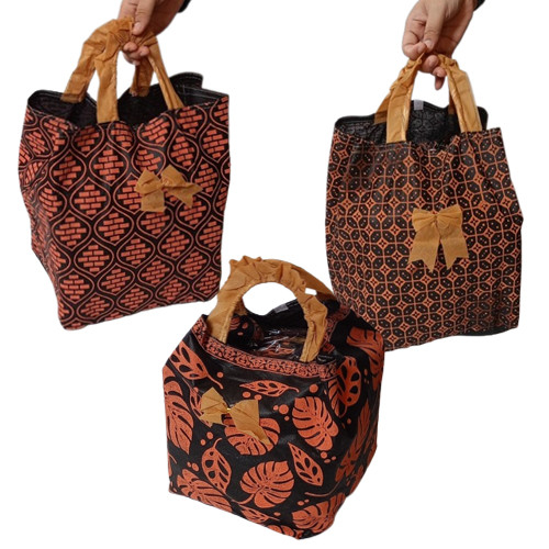 Tas Berkat Tas Hajatan Serut Motif Batik Tebal Tas Kotak Nasi Ukuran 20cm 22cm