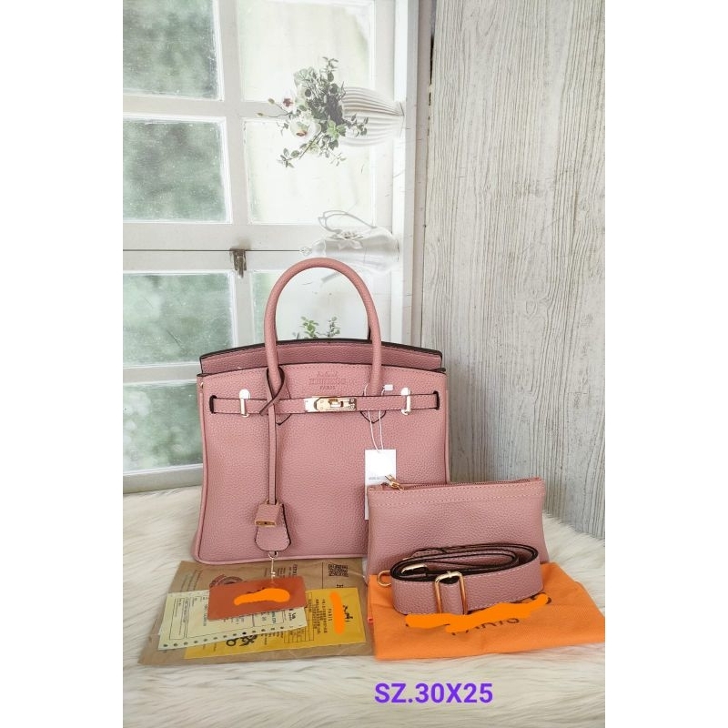Tas birkin Bahan togo dan croco Sz 30x25 1 ruang udah embos 1 tali panjang kulit bisa di adjust Ada noser Free pouch Dustbag Ada fakebil Accesoris embos Bawah pake kaki- kaki Besi Ada gembok dan kunci Berat 850 gram