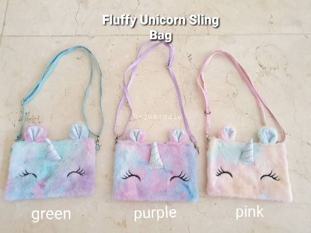 Detail TAS BULU ANAK MOTIF SMILE UNICORN PINK IMPORT