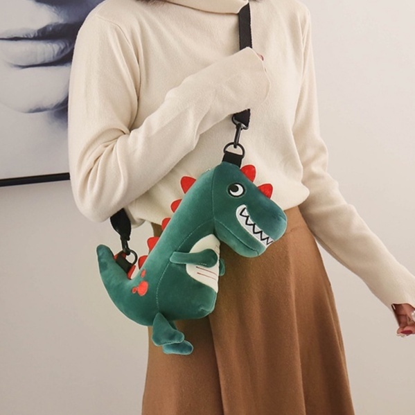 Ibu & Bayi > Mainan > Boneka & Mainan Boneka > TAS DINOSAURUS Boneka TIREX SELEMPANG Kartun BAHAN PLUSH Bag TAS DINO Jepang Korea Hadiah LUCU WANITA CEWE
