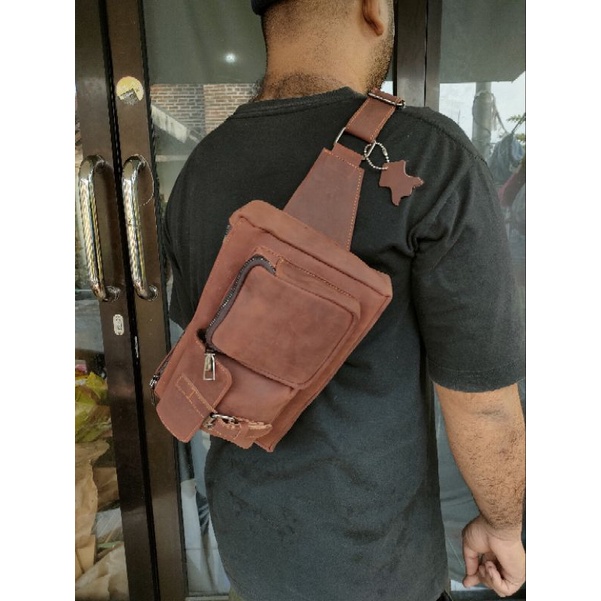 Detail Tas Dragon kulit sapi Waist Bag Tas Dada kulit sapi asli crazy horse