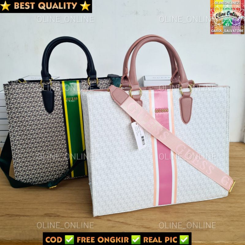 Video perkenalan produk tas ederle shopping bag shopper big jumbo size tote bag shoulder bag carry all on the go stripes logo besar Xl gs gb selempang jinjing top handle crossbody. Sumber: Shopee.
