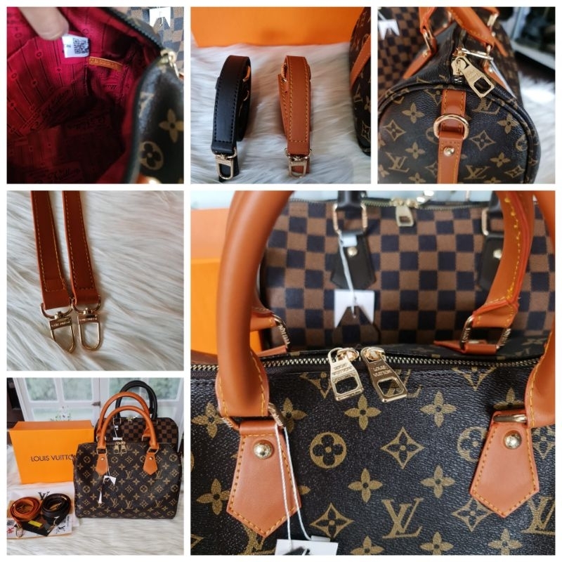 Speedy LV Bandouliere Material Leather waterproof Bahan tebal dan lentur SZ 30x21x17 cm Dalam dilapisi kain full embos 1 ruang (di dalam ada kantong kecil pake resleting) Tali panjang kulit bisa di adjust zipper Embos Ada noser barcode Full embos Dustbag import semprem Note harga tidak pake box