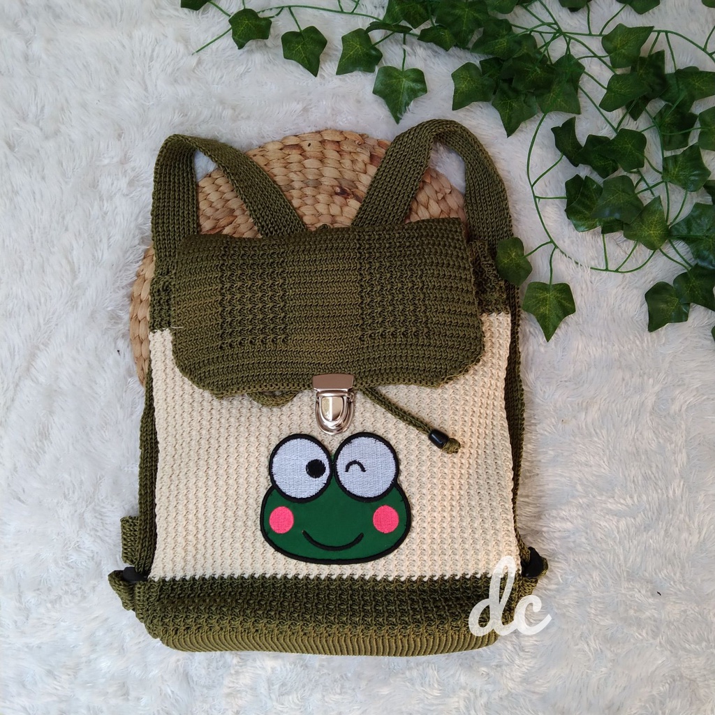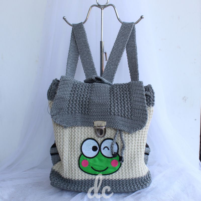 Tas gendong rajut murah berkualitas / tas punggung karakter keroppy rajutan murah / tas anak keropi